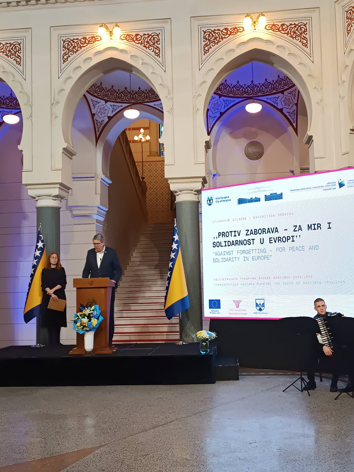 Odabrani radovi nastali tokom radionice predstavljeni su i na svečanom otvaranju izložbe u Vijećnici 31. marta 2026. godine, upriličenom povodom obilježavanja početka opsade Sarajeva. Poseban doprinos programu dala je učenica Nadin Jonuz, koja je recitovala vlastitu pjesmu.