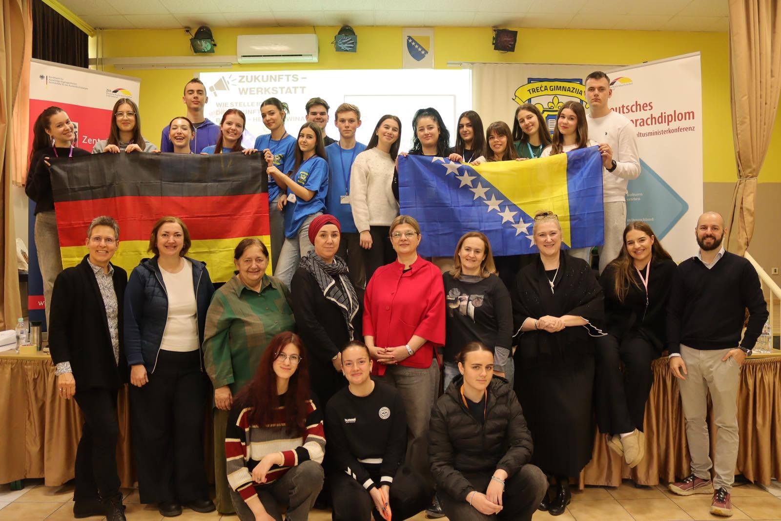 Od 17. do 19. marta naši učenici učestvovali su u trodnevnoj radionici „Zukunftswerkstatt“, koja je okupila DSD učenike iz cijele Bosne i Hercegovine s ciljem da kroz razgovor, razmjenu mišljenja i zajednički rad promišljaju o budućnosti društva u kojem žive. Našu školu predstavljali su učenici trećih DSD razreda: Iman Hasanbegović, Ela Pašić, Lejla Šehović, Medina...